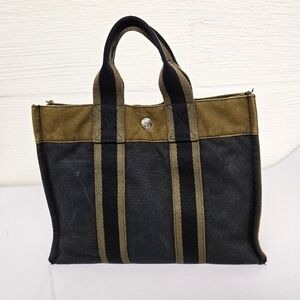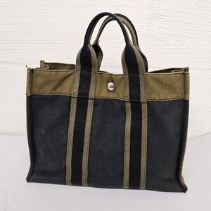 Hermes Canvas Fourre Tout Holdall Tote Bag in Green and Navy Size PM