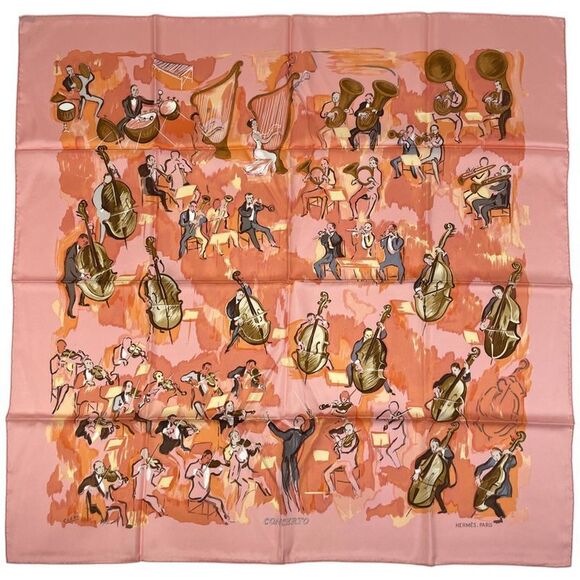 Hermes Carré 90 Concerto Scarf Silk Pink Ladies