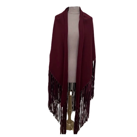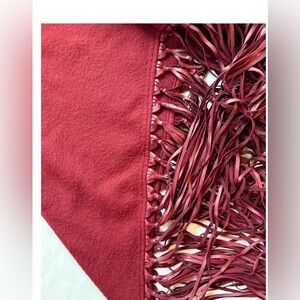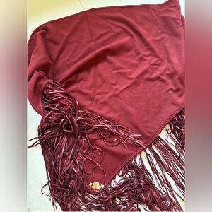 In burgundy cashmere & wool , lambskin leather fringe to match.