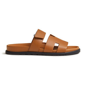 Hermes Chypre Sandal Mens Naturel Brown Gold Leather H Logo Slide Flat 45 12
