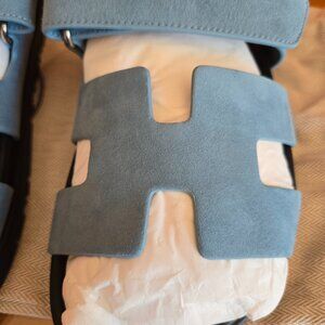 Hermes Chypre Sandals Woman Size 36 in Bleu Jean. They are New, Never worn with No defects. They run true to size. Techno-sandal in suede goatskin with anatomical rubber sole and adjustable strap. They are extremely comfortable. I also have them in Beige so I am selling these I don't need two pairs.
