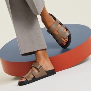 Techno-sandal in Epsom calfskin with anatomical rubber sole and adjustable strap.