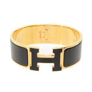Hermes Clic Clac GM H Motif Bracelet Bangle Accessories Black And Gold