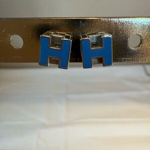 Authentic Hermès Clic H stud earrings in striking blue enamel with silver-tone hardware. These classic earrings feature the iconic “H” design with “Hermès Paris” markings on the backings. A timeless and chic accessory that adds a pop of luxury color to any outfit.