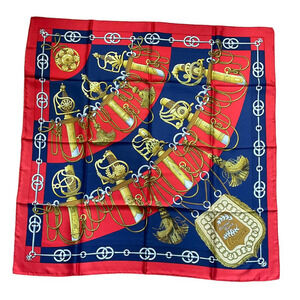 Hermes Cliquetis 100% Silk Scarf Red/Blue Color Way. 90cm Square. EUC