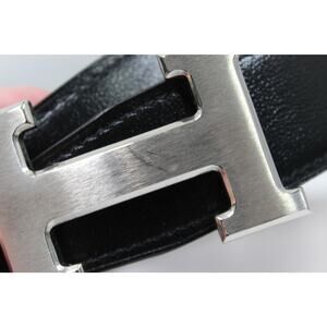 Hermes Constance H Buckle Belt Black Leather Size 85 Palladium