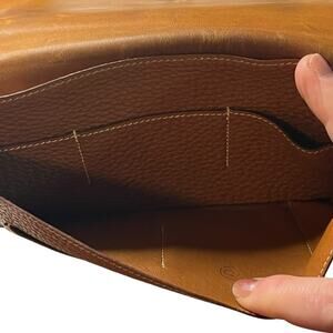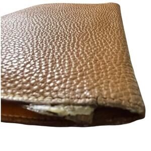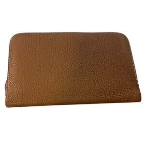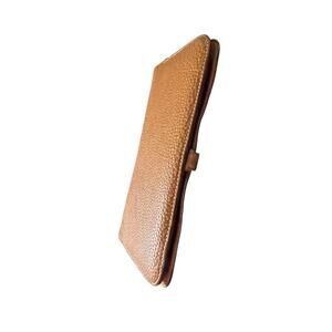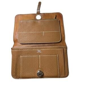 Preowned and well worn exterior Hermes Dogon Duo Calf Leather Long Wallet Palladium Hardware and "Gold" leather