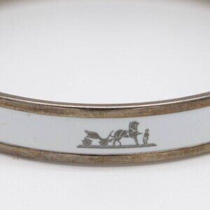 Hermes Emaille PM Bangle White Silver Trim Bracelet 9" Wrist
