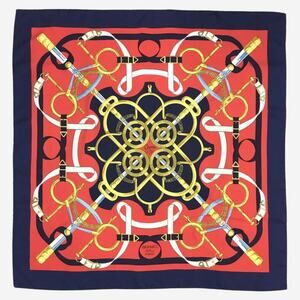 This scarf features swords, buckles and ribbons and has a valiant and equestrian vibe to it. Whether you decide to wear this scarf around your neck with a scarf ring, or fashion it into a top, you will turn heads everywhere you go! Own a part of Hermes Heritage today.