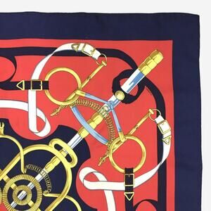 Hermes Eperon d'Or Navy and Red Carre 90 100% Silk Scarf