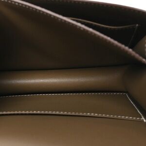 This is an authentic HERMES Epsom Constance 18 in Etoupe. New model with mirror. This stylish shoulder bag is finely crafted of epsom calfskin leather in taupe. The bag features a long shoulder strap with Silver and palladium plated hardware, including an H buckle on the flap. This opens to a compact partitioned leather interior with flat pockets.