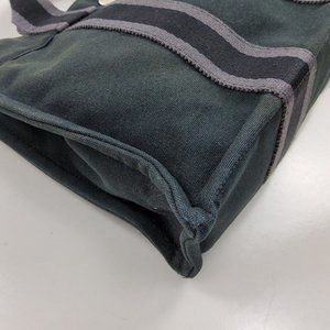 Hermes Canvas Tote Bag Satchel Black Grey. Pre-owned condition. There is fabric wear on the corners. There is some minor fading. Measures 12x9x3.25. Please see photos for detailed condition.