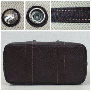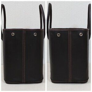 This is an authentic HERMES Amazonia Buffle Skipper Garden Party 36 MM in Havane. This handy tote is crafted of artificial amazonia leather substitute in brown with grained buffalo leather trim. This bag features rolled leather top handles, a palladium snap closure and a leather covered base. The top opens to a herringbone natural fabric interior spacious enough for everyday essentials with the classical sophistication of Hermes!