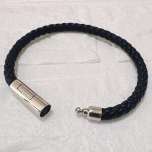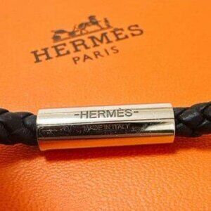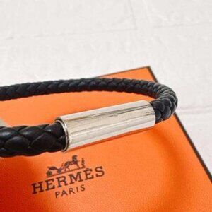 Hermes Goliath Leather Bracelet Silver Hardware Black