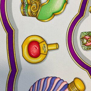 Hermes Green Multi Qu'Importe Le Flacon Print Square Silk Twill Scarf