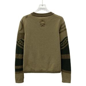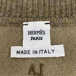 HW0007 Hermes 22 Dark Brown Patterned Appliquéd Cashmere Crew Neck Long Sleeve Knit, Size S, 99% New