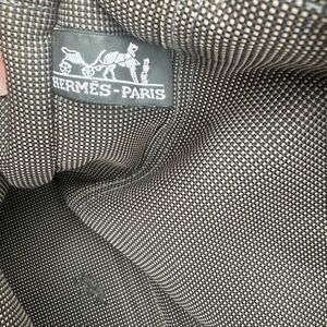 Authentic Hermes Herline canvas MM tote bag in grey. One minor stain on the interior, otherwise good condition. Zipper is zippy. No lock.