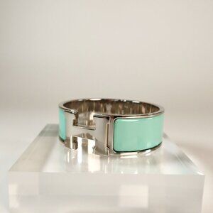 Hermes PM Clic H Bracelet Aqua and Silver.