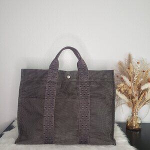 Authentic Hermes Herline Fourre Tout GM Tote Bag - Grey and Black Canvas