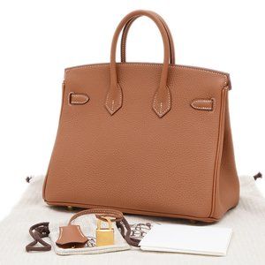 Hermes Hermès Birkin 25 handbag in Togo gold with matte hardware and K stamp