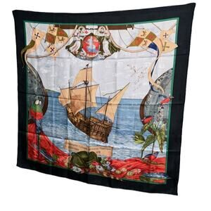 Hermes Hermès CHRISTOPHE COLOMB DECOUVRE L’AMERIQUE 12 OCTOBRE 1492 SILK SCARF