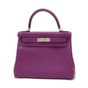 Used Hermes Hermès Kelly 28 handbag with inner stitching, Evercolor anemone pattern, silver hardware, Z stamp (SKU: GZl1br0p)