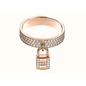 Hermes Kelly Clochette Ring Lock Medium Model Rose Gold 18K Diamonds Siz 54 Rare
