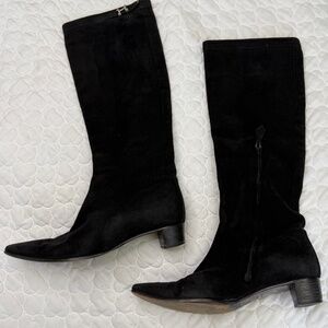 Hermes Knee-High Suede Heeled Boots Size 37 US 7