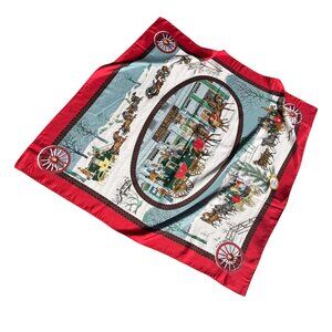 Hermes L‘Hiver en Poste Red Winter Silk Scarf Philippe Ledoux Carré 90 35"