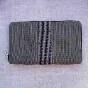 Hermes Large Organizer Yell Lone Long Wallet Canvas Nylon Gray Navy Zip Around
