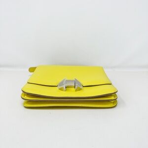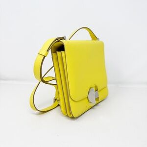This is an authentic HERMES Evercolor 2002 20 in Lime. This boxy shoulder bag is beautifully crafted of lightly textured calfskin leather in yellow. The bag features a long adjustable leather shoulder strap with a palladium silver buckle, and the front flap secures with a matching rounded H palladium clasp. The yellow lambskin leather interior features two main accordion compartments, one with a gusseted zip pocket, as well as a front slip pocket that sits just under the flap. The exterior also features a rear flat slip pocket for additional versatility. Comes with storage dust bag.