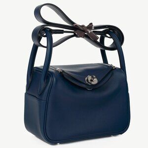 Hermes Lindy II Mini Verso Bleu Navy & Bleu Frida Swift PHW Shoulder Bag
