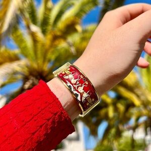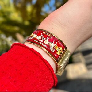 Hermes Loquet Gold-Plated SS White Horses on Red Field Enamel Wristwatch
