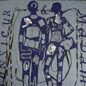 Hermes Madame and Monsieur Navy Blue Cotton Large Scarf