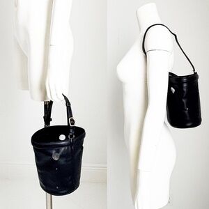 Hermes Mangeoire Bag Tote Black Box Calf Leather Feed Bucket Bag Vintage 60s