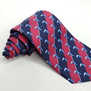 Hermes Mens Silk Tie Necktie Toucan Tropical Bird Red Navy Blue Stripe