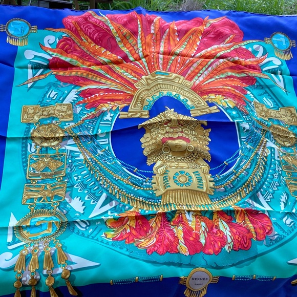 Hermes Mexican South American native Indian Mayan Aztec print silk Carre scarf