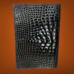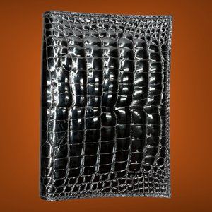 Agenda cover in Genuine Black Alligator Mississippiensis (Square (☐) Lisse (Shiny):A square is used to identify an item made using Alligator Mississippiensis) with 2 pockets and a hook for refill