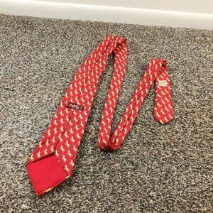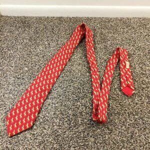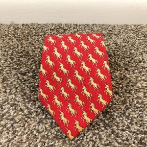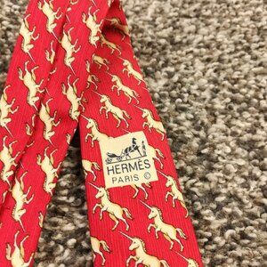 Hermes Neck Tie Silk Unicorn Print Red Beige Tan 61L 3.75W France Made