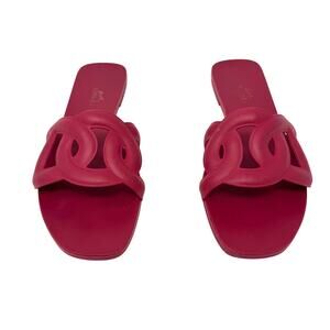 These are authentic Hermes Oran Aloha Chaine sandals in rose baie rubber, size 38 / 8. They feature Hermes’ signature Chaîne d’Ancre (anchor chain) cut-out detail — a recognizable design that instantly elevates even the simplest look.