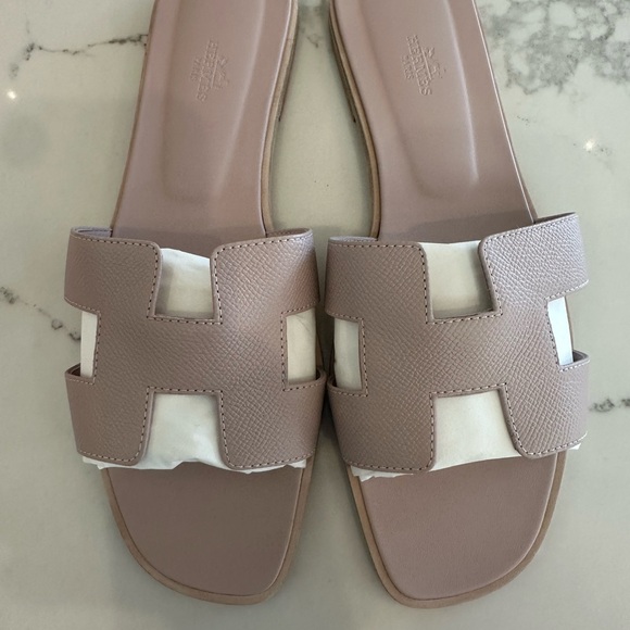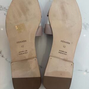 Hermes Oran Rose Porcelaine Leather Slide Sandals Size 42/11