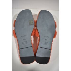 Hermes Oran Teddy Shearling Fur Orange H Logo Slide Sandal Mule Flat Flop 38.5