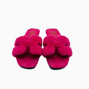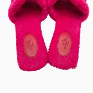 Hermes Oran Teddy Shearling Fur Pink Slide Sandal Size 38