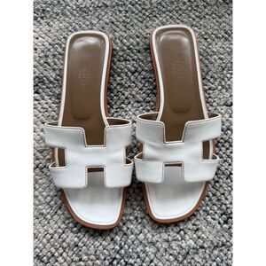 Hermes Oran White 37 Leather Sandals