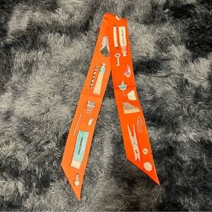 Hermes Orange Silk Scarf with Graphic Print
