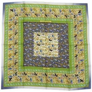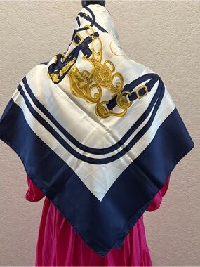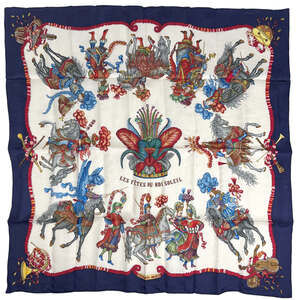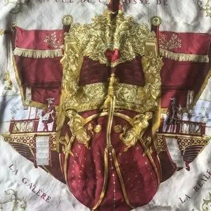 Hermes-Paris 100% silk Vue Du Carosse De La Galere La Reale Red Gold Scarf.