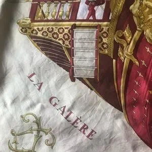 Hermes Paris 100% silk Vue Du Carosse De La Galere La Reale Red Gold Scarf