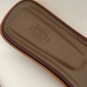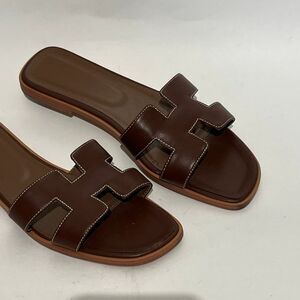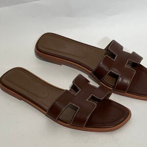 Hermes Paris Women's Brown Oran H Shaped Strap Leather Slip On Sandals Size 40