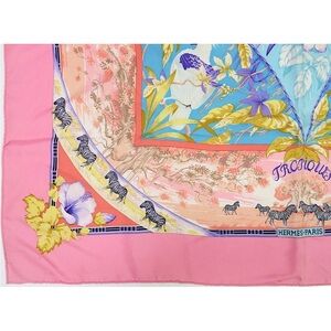Hermes Pink and Multicolor Silk Scarf