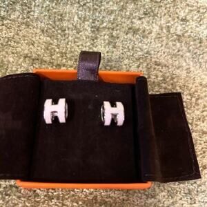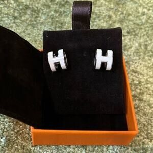 Hermes Pop H earring White Lacquer / palladium plated New in box